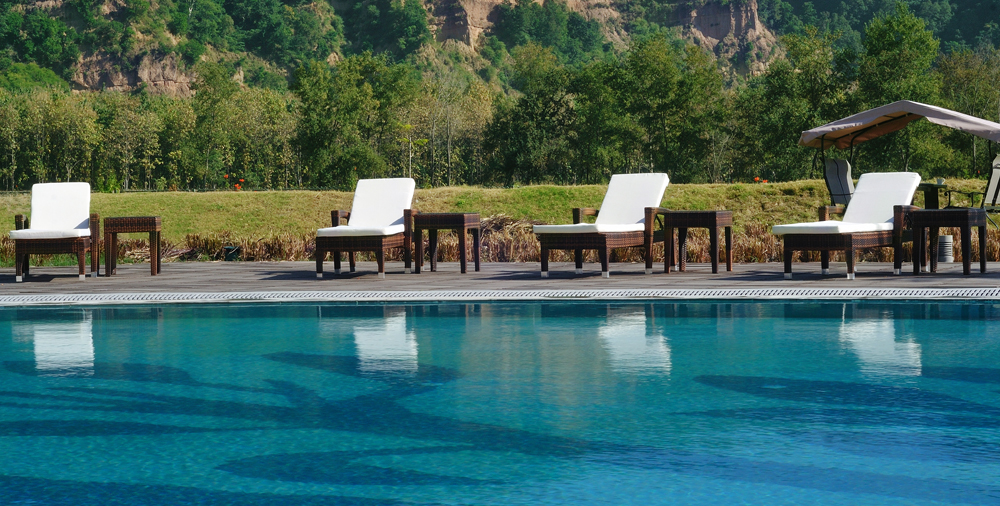 The pristine cool waters of our blue swimming pool await you! Take a dip and feel your stress and worries wash away!