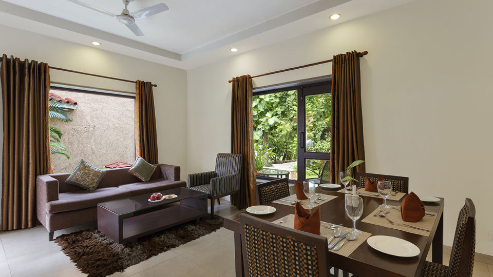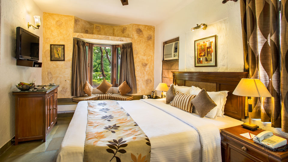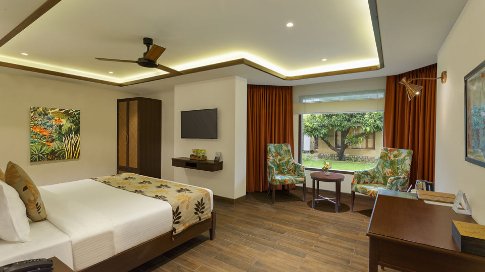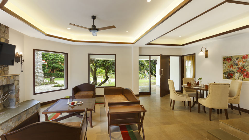Our wildlife jungle resort houses 93 rooms, with bedrooms distributed among private villas of two, three, four bedrooms or independent and duplex rooms. The villas have their own private garden and entrance. Each of the rooms boast of tasteful decor, with plenty of natural light seeping in. Large bedrooms, fireplaces, sitting areas, and attached private sit-outs are the standout features!